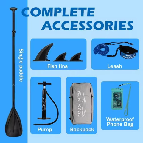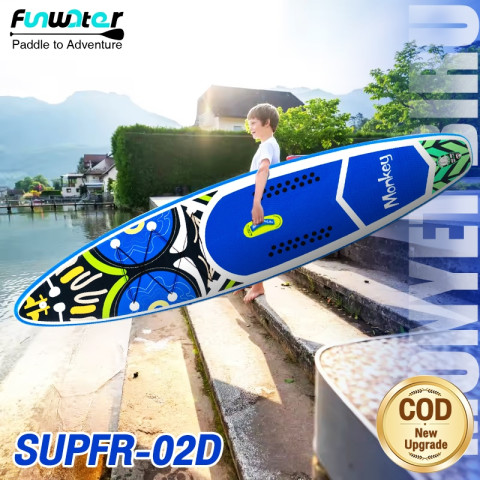 Funwater กระดานโต้คลื่นแบบพอง (Paddle Board) ชุดอุปกรณ์ครบชุด เวอร์ชันอัปเกรด ในดีลสุดคุ้ม Buy 1 Get 8 พร้อมลุยทุกกิจกรรมทางน้ำ ไม่ว่าจะพายเล่นชิล ๆ ท่องเที่ยว ผจญภัย หรือออกทริปตกปลา กระดานออกแบบมาให้ ทรงตัวง่าย มั่นคง เหมาะทั้งมือใหม่และผู้มีประสบการณ์ ผลิตจาก PVC คุณภาพสูง น้ำหนักเบาแต่ทนทาน รองรับน้ำหนักได้สูงสุด 330 ปอนด์ (ประมาณ 150 กก.)