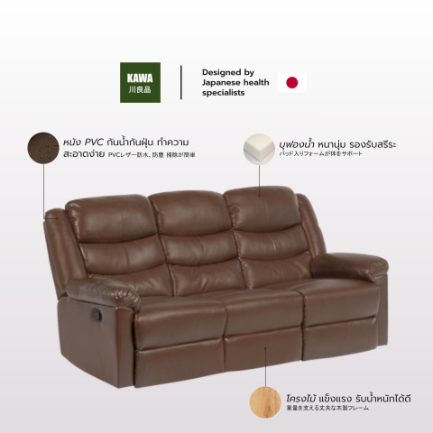 Kawa รุ่น Hani โซฟา Recliner PVC ปรับเอน 3 ที่นั่ง เติมความสบายให้มุมพักผ่อนของคุณด้วยโซฟาปรับเอนดีไซน์โมเดิร์นลอฟท์ นุ่มแน่นนั่งสบาย โครงสร้างแข็งแรงทนทาน พร้อมผิวสัมผัสหนังสังเคราะห์ PVC ที่ช่วยให้ดูแลทำความสะอาดง่าย กันน้ำและกันฝุ่น ตอบโจทย์ทั้งบ้านและคอนโด