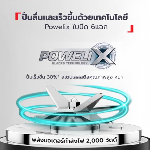 เทคโนโลยีใบมีด Powelix 6 แฉก (สเตนเลสคุณภาพสูง) ปั่นเร็วขึ้น 30%* ให้เนื้อสัมผัสเนียนสม่ำเสมอ