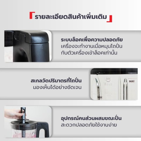 ระบบ Safety: เครื่องทำงานเมื่อโถและฝาปิดอยู่ในตำแหน่งที่ถูกต้องเท่านั้น