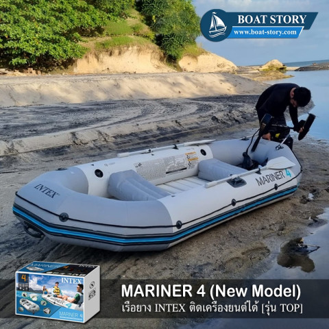 เรือยาง Intex Mariner 4 [*New Model*] รุ่นทนทานสุดในซีรีส์ พร้อมออกทริปได้ทันทีด้วยอุปกรณ์ครบชุด ของแท้จาก BOAT STORY เหมาะทั้งใช้งานพักผ่อน ตกปลา หรือพายเล่นในทะเลสาบ/แม่น้ำ ตัวเรือออกแบบให้มั่นคง แข็งแรง รองรับผู้โดยสารได้หลายคน พร้อมพื้นเรือ PVC เพิ่มความสบายและความปลอดภัยระหว่างใช้งาน