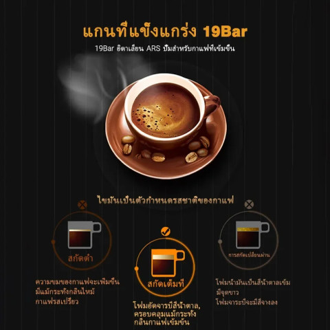 ชงกาแฟแฟนซีได้ในคลิกเดียว เลือกเมนูยอดนิยมได้ง่าย เช่น อเมริกาโน ลาเต้ คาปูชิโน่ และสไตล์อิตาเลียน