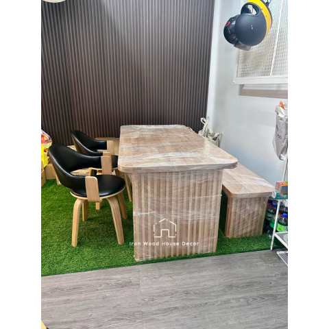 พ่นสีธรรมชาติ + เคลือบยูรีเทน ช่วยให้ผิวโต๊ะทนทาน เช็ดทำความสะอาดง่าย