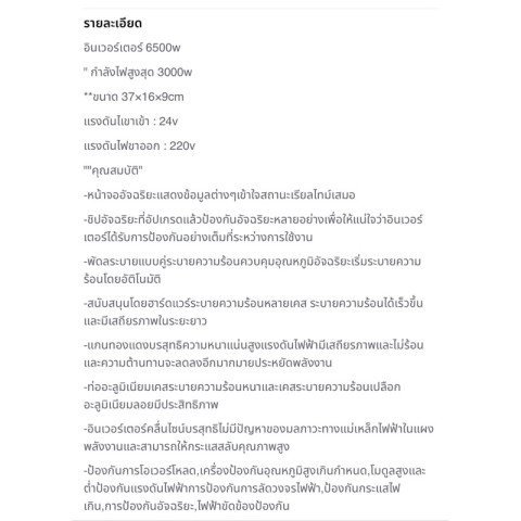 หมายเหตุการใช้งาน: วัตต์ที่ระบุเป็น Peak (รับโหลดกระชากช่วงสั้น) หากใช้งานต่อเนื่องแนะนำเผื่อกำลังและจัดระบบแบตเตอรี่/สายไฟให้เหมาะสมเพื่อประสิทธิภาพและความปลอดภัยสูงสุด