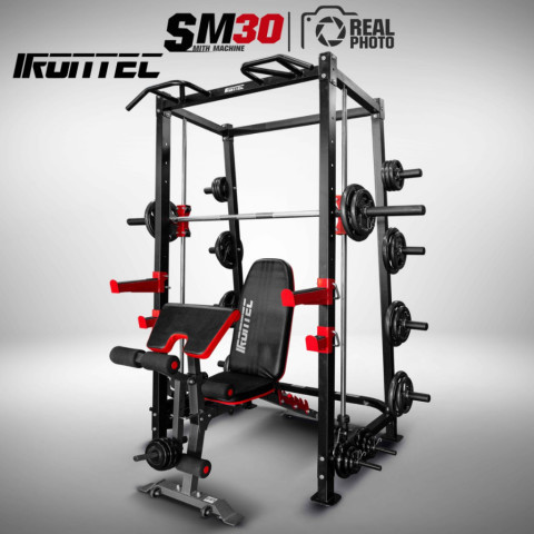 สมิทแมชชีน รุ่น SM30 (SMITH MACHINE) แบรนด์ IRONTEC ราคา 20,703.00 บาท — ชุดเวทคุ้มค่าที่สุดสำหรับมือใหม่และคนอยากสร้างกล้ามที่บ้าน “เครื่องเดียวจบ” มาพร้อมม้านั่งเล่นเวทอย่างดี และแถมฟรีแผ่นน้ำหนักรวม 40 กก. พร้อมจัดมุมฟิตเนสส่วนตัวให้พร้อมใช้งานได้ทันที