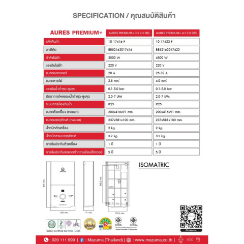 ขนาดสายไฟแนะนำ: 2.5 SQ.MM.