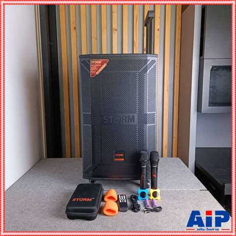 STORM RM-V6615 ตู้ลำโพงไม้แบบแอคทีฟ (Active Speaker) พลังเสียงแน่นเต็มย่าน มาพร้อมไมโครโฟนไร้สาย 2 ตัว เหมาะทั้งงานคาราโอเกะ งานอีเวนต์ งานพิธี หรือใช้งานในร้านค้า/ห้องซ้อม ให้เสียงเบสหนัก อัดแน่นด้วยวูฟเฟอร์ 15 นิ้ว ผสานเสียงกลาง 6.5 นิ้ว และทวีตเตอร์ 3 นิ้ว ครบทุกมิติของเสียงเพลงและเสียงพูด
