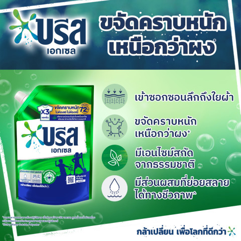 บรีส เอกเซล ชนิดน้ำ สูตรเข้มข้น มาพร้อมเทคโนโลยี ขจัดคราบ 2 แอคชั่น ซอกซอนลึกเข้าไปถึงใยผ้า สลายคราบติดแน่น ผสานเอนไซม์จากธรรมชาติ ช่วยสลายคราบฝังลึกและลดกลิ่นไม่พึงประสงค์ได้ดีกว่า* เหมาะสำหรับการใช้งานทุกวัน ทั้งผ้าขาวและผ้าสี ให้สีผ้าสดใสและถนอมเนื้อผ้า
