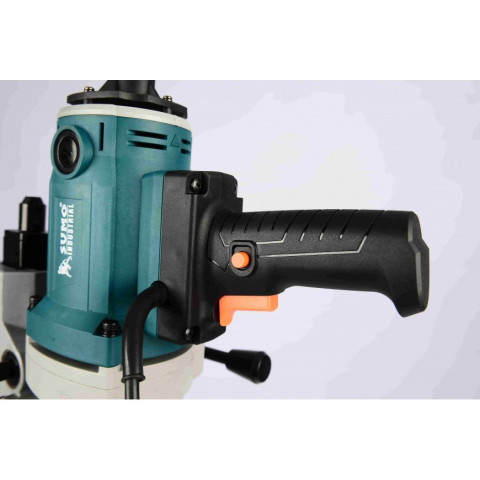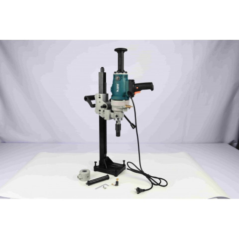 มาพร้อมฐานเหล็กตั้งในการเจาะ ช่วยยึดเครื่องให้มั่นคง ขณะเจาะผนัง พื้น หรือเพดาน