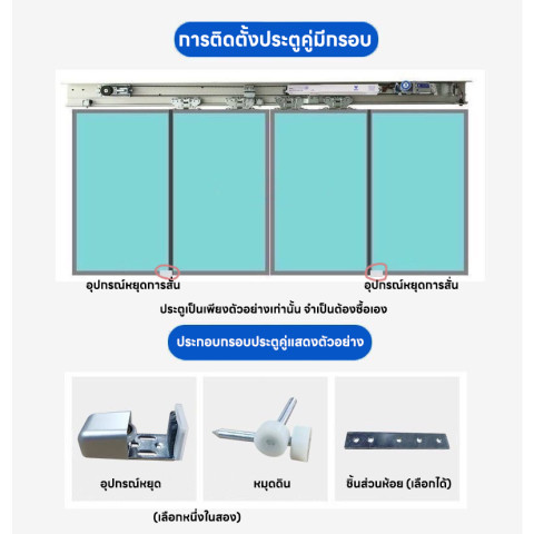 รองรับน้ำหนักได้มาก ประตูเดี่ยว ≤ 300 กก. / ประตูคู่ ≤ 150 กก. ต่อบาน