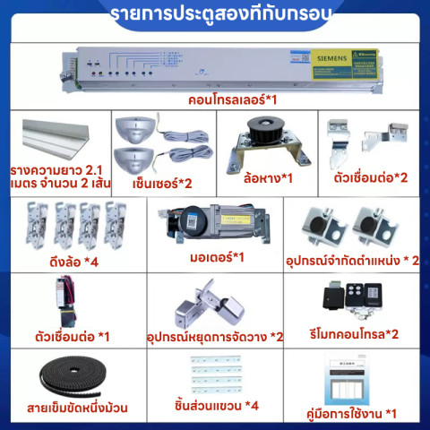 ส่วนประกอบหลัก (กล่องควบคุม มอเตอร์ เซ็นเซอร์) สามารถติดตั้งรวมในรางเดียวกัน เชื่อมต่อสายตามคู่มือและพร้อมใช้งานทันทีเมื่อเปิดเครื่อง