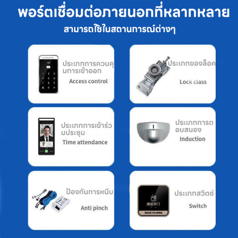 รองรับการใช้งานร่วมกับระบบประตูอัตโนมัติหลายประเภท เช่น ประตูบานเลื่อนอัตโนมัติ ประตูบานสวิง ประตูโค้ง ประตูหมุน ฯลฯ (ขึ้นอยู่กับการออกแบบระบบ)