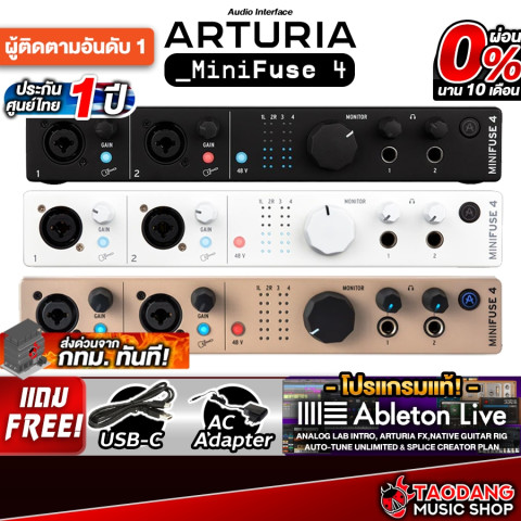 Arturia Minifuse 4 ออดิโออินเตอร์เฟสระดับโปรสำหรับสายทำเพลง และงานสตูดิโอที่ต้องการคุณภาพเสียงคมชัด ใช้งานง่าย ครบทั้งอัดร้อง อัดเครื่องดนตรี ไลฟ์สตรีม พอดแคสต์ และงานโปรดักชันแบบมัลติแชนแนล มาพร้อมดีไซน์กะทัดรัด เชื่อมต่อสะดวกด้วย USB-C และรองรับทั้ง Windows / MacOS ในราคาเพียง 10,588.50 บาท จากร้านเต่าแดง ร้านเครื่องดนตรีอันดับ 1 บน Shopee ของแท้ 100% พร้อมประกันและบริการหลังการขายครบถ้วน