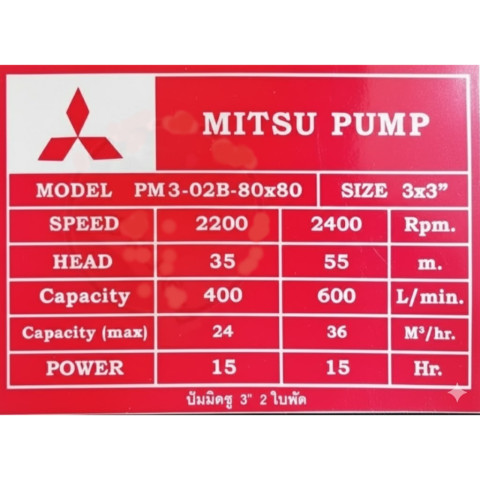 การใช้งาน: ดูด-ส่งน้ำสะอาดหรือน้ำทั่วไปที่ไม่มีตะกอนหยาบขนาดใหญ่