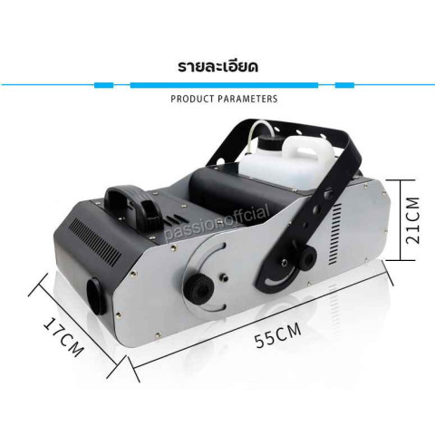 ตัวเครื่องมีขนาดกะทัดรัด 55 × 17 × 21 ซม. น้ำหนักประมาณ 10 กก. เคลื่อนย้ายสะดวก ติดตั้งง่าย พร้อมถังน้ำยาควันขนาดใหญ่ ความจุ 3KG ใช้งานได้นาน ลดการเติมบ่อย เหมาะสำหรับผู้จัดงานมืออาชีพ และผู้ที่ต้องการเพิ่มลูกเล่นให้การแสดงอย่างคุ้มค่า