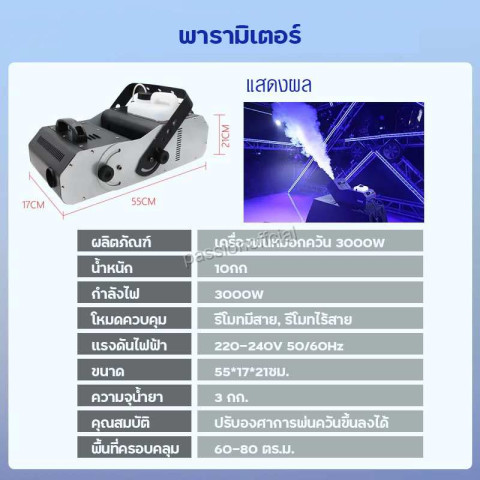 กำลังสูง 3000W ให้ปริมาณควันแน่น ละเอียด สร้างบรรยากาศเวทีได้อย่างมืออาชีพ