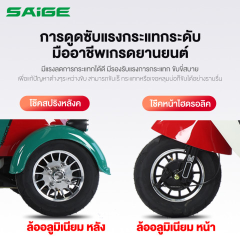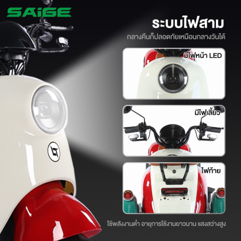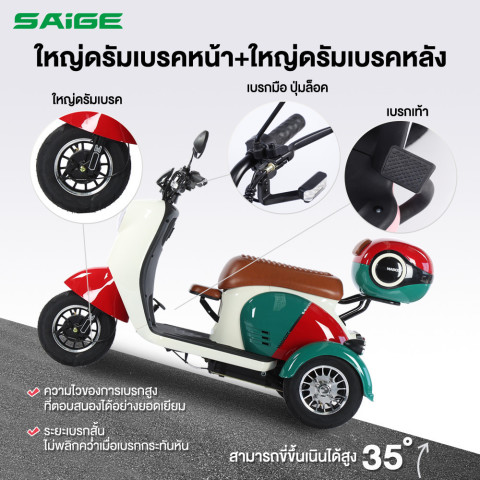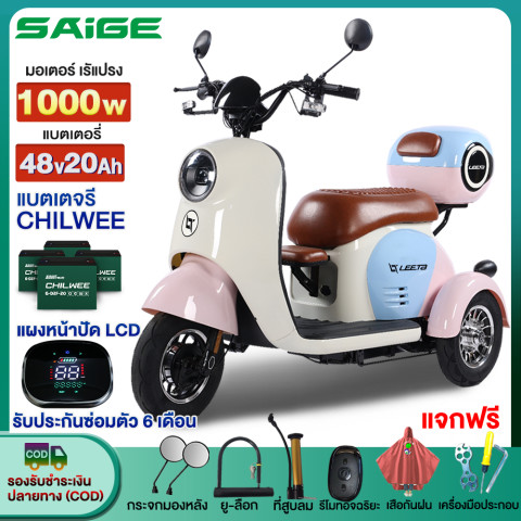 สัมผัสประสบการณ์การเดินทางที่มั่นคง ปลอดภัย และสะดวกสบายกับ รถไฟฟ้าผู้ใหญ่ 3 ล้อ 1000W Saige รุ่น 48V 20AH มอเตอร์ไซด์ไฟฟ้า 3 ล้อที่ออกแบบมาเพื่อการใช้งานจริงทุกวัน เหมาะสำหรับผู้ใหญ่ ผู้สูงอายุ หรือผู้ที่ต้องการความปลอดภัยในการขับขี่มากกว่าสกู๊ตเตอร์ทั่วไป พร้อมกล่องท้ายรถและชุดของแถมจัดเต็มถึง 7 ชิ้น คุ้มค่าที่สุดในงบประมาณเดียว