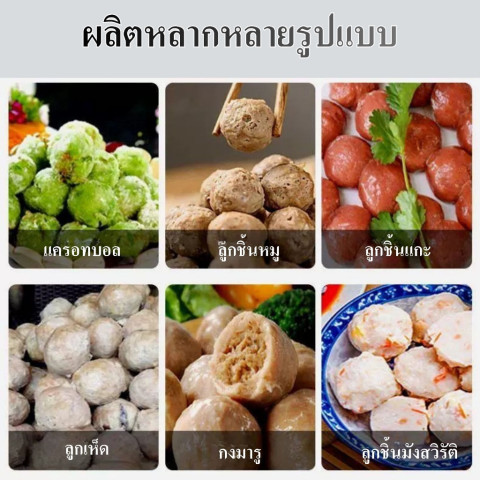 รองรับวัตถุดิบหลากหลาย ใช้ปั้นได้ทั้งลูกชิ้นหมู, ลูกชิ้นเนื้อ, ลูกชิ้นไก่, ลูกชิ้นปลา, ลูกชิ้นกุ้ง หรือสูตรพิเศษของคุณเอง เหมาะกับร้านอาหาร โรงงานแปรรูป และผู้ผลิต OEM