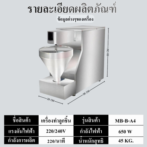 ชื่อสินค้า: P&P SHOP เครื่องปั้นลูกชิ้นอัตโนมัติ รุ่น MB-B-A4