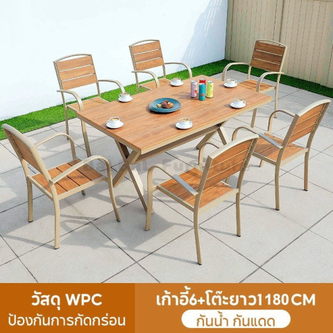 โต๊ะทานอาหารกลางแจ้งสำหรับ 6 คน เหมาะสำหรับสวน ลานบ้าน ระเบียง และชานบ้าน