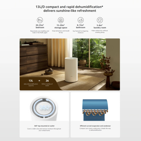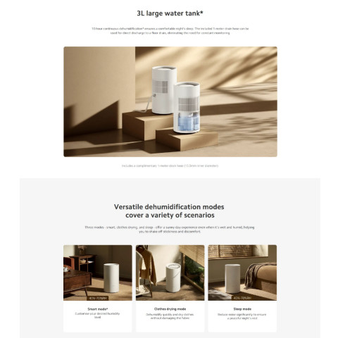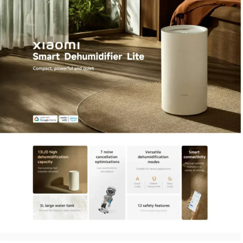 สัมผัสอากาศสบาย แห้งกำลังดีในทุกมุมบ้านด้วย Xiaomi Smart Dehumidifier Lite เครื่องลดความชื้นอัจฉริยะขนาดกะทัดรัด ที่ดูดความชื้นได้อย่างมีประสิทธิภาพ เสียงเงียบ และควบคุมง่ายผ่านแอป เหมาะสำหรับคอนโด ห้องนอน ห้องทำงาน หรือห้องที่มีปัญหาความชื้นสะสม เชื้อรา กลิ่นอับ และผ้าแห้งช้า