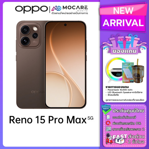 สัมผัสประสบการณ์สมาร์ทโฟนเรือธงดีไซน์หรูและสเปคจัดเต็มกับ OPPO Reno 15 Series (15F / 15 / 15 Pro / 15 Pro Max) จากร้าน Mocare มั่นใจด้วยประกันศูนย์ไทย การันตีคุณภาพ พร้อมบริการครบวงจรและของแถมแน่นกล่อง เหมาะทั้งสายถ่ายภาพ เกมมิ่ง ทำงาน และใช้งานโซเชียลตลอดวันในดีไซน์พรีเมียม ราคาคุ้มค่า
