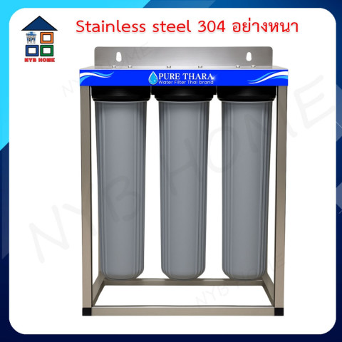 เครื่องกรองน้ำ PURE THARA BIGBLUE 3 ขั้นตอน ขนาด 20 นิ้ว (สแตนเลส 304 หนา) ช่วยยกระดับคุณภาพน้ำใช้ภายในบ้านให้ใส สะอาด ลดตะกอน กลิ่น และคลอรีน เหมาะสำหรับติดตั้งใช้งานในครัวเรือนทั้งน้ำประปา น้ำบาดาล หรือน้ำบ่อ ด้วยโครงสร้างสแตนเลส 304 แข็งแรงทนทาน พร้อมชุดอุปกรณ์และไส้กรองครบชุด ใช้งานได้มั่นใจในทุกวัน