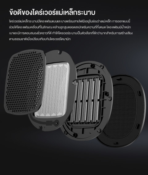 ไดรเวอร์แบบ Planar Magnetic ถ่ายทอดรายละเอียดเสียงได้แม่นยำ เวทีเสียงกว้าง แยกชิ้นดนตรีชัด เหมาะสำหรับผู้ที่ต้องการคุณภาพเสียงแบบ Hi‑Fi ในรูปแบบไร้สายความเป็นเลิศด้านเสียงของ Qualcomm