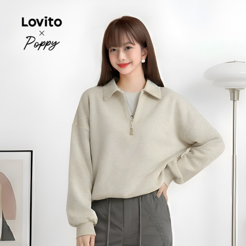 Lovito x Poppy เสื้อสเวตเตอร์ลำลองแบบเรียบมีซิปสำหรับฤดูใบไม้ผลิและฤดูร้อนสำหรับผู้หญิง รุ่น L102AD477 ในราคา 395.76 บาท — ไอเท็มเรียบเท่ที่ใส่ได้ทุกวัน ดีไซน์ทรงหลวมให้ลุคสบายๆ แต่ยังดูมีสไตล์ เหมาะกับอากาศช่วง春/夏 ที่อยากได้เสื้อคลุมบางๆ ใส่ทำงาน เที่ยว หรือคาเฟ่ก็ลงตัว