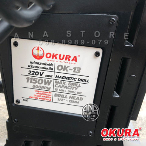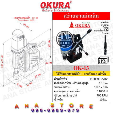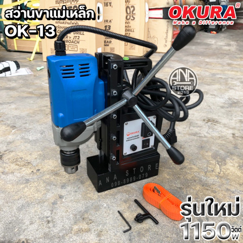 สว่านขาแม่เหล็ก 13mm OKURA OK-13 รุ่นใหม่ 1150W ราคา 6,180.00 บาท ตัวช่วยมืออาชีพสำหรับงานเจาะเหล็กและงานโครงสร้างที่ต้องการความแม่นยำสูง ยึดเกาะแน่นด้วยฐานแม่เหล็กแรงดูดสูง ช่วยลดการสั่นและเพิ่มความปลอดภัยขณะทำงาน เหมาะทั้งงานหน้างาน โรงงาน และงานติดตั้งที่ต้องการความคล่องตัว