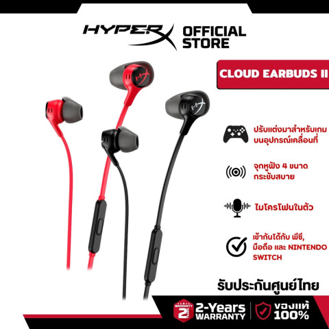 HyperX Cloud Earbuds II Gaming Headphones หูฟังเอียร์บัดมีสายสำหรับเกมเมอร์และสายเอนเตอร์เทนบนมือถือ ให้เสียงคมชัดเต็มอารมณ์ด้วยไดรเวอร์ไดนามิกขนาด 14.3 มม. ที่ปรับจูนมาเพื่อการเล่นเกมบนอุปกรณ์เคลื่อนที่โดยเฉพาะ ไม่ว่าจะเล่นเกม ดูสตรีม หรือฟังพอดแคสต์/หนังสือเสียง ก็ได้รายละเอียดเสียงครบและบาลานซ์ดี