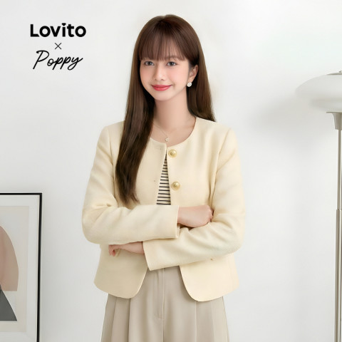 Lovito x Poppy พ็อกเก็ตเบลเซอร์ปุ่ม เสื้อเบลเซอร์ฤดูใบไม้ร่วง-ฤดูหนาวสำหรับผู้หญิง LNA29388 (หลากสี) เติมลุคให้ดูเนี้ยบแบบลำลองได้ง่าย ๆ ด้วยเบลเซอร์ทรงหลวมที่สวมสบาย แมตช์ได้ทั้งกับกางเกงยีนส์ กระโปรง หรือกางเกงทำงาน เหมาะสำหรับอากาศเย็นช่วงปลายปีและการแต่งตัวในชีวิตประจำวัน