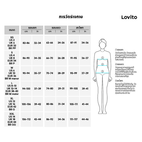 ข้อมูลอ้างอิงไซซ์จากนางแบบ (สวมไซซ์ S): ส่วนสูง 165 ซม. | น้ำหนัก 55 กก. | อก 88 ซม. | เอว 68 ซม. | สะโพก 93 ซม.