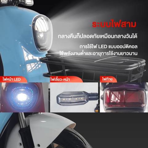 ไฟส่องสว่างครบชุด ไฟหน้า LED, ไฟเลี้ยวหน้า–หลัง, ไฟท้าย มองเห็นชัดทั้งผู้ขับและผู้ร่วมทาง