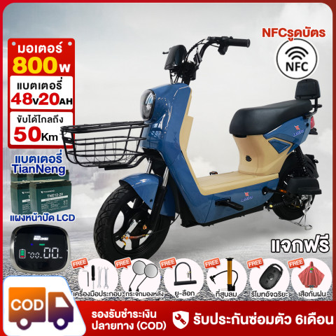 ดีไซน์สีฟ้าเท่ไม่ซ้ำใคร ผสมผสานพลังมอเตอร์ 800W กับแบตเตอรี่ 48V 20AH ให้ระยะทางวิ่งได้ไกล ประหยัดค่าเดินทางในระยะยาว แถมระบบ NFC รูดบัตร + รีโมทอัจฉริยะ เพิ่มความสะดวกและความปลอดภัยขั้นสุด