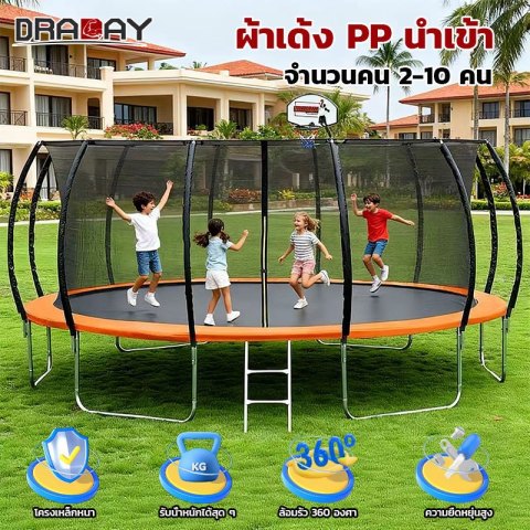เติมเต็มช่วงเวลาแห่งความสุขของครอบครัว เสริมสร้างพัฒนาการและสุขภาพที่ดีให้เด็ก ๆ พร้อมทั้งให้ผู้ใหญ่ได้ออกกำลังกายอย่างสนุกสนานในเครื่องเดียวด้วย DRADAY แทรมโพลีน 6–8 นิ้ว พร้อมเน็ตกันตก 360° และแป้นบาส 10FT ชุดแทรมโพลีนที่ทั้งคุ้มค่า ปลอดภัย และตอบโจทย์ทุกการกระโดดของคุณ
