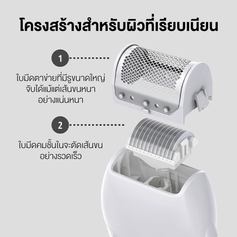 ตัวเครื่องและส่วนหัวออกแบบให้กันน้ำทั้งชุด ใช้งานได้สะดวกทั้งในและนอกห้องน้ำ สามารถล้างทำความสะอาดด้วยน้ำได้ทันทีโดยไม่ต้องใช้สบู่ ใบมีดเอียง 45 องศา ขนาดเล็ก อ่อนโยนต่อผิว ช่วยลดการระคายเคืองแม้บริเวณบิกินี่ที่บอบบาง มาพร้อมมอเตอร์กำลังสูงที่สามารถตัดแต่งขนได้รวดเร็วสูงถึงประมาณ 12,000 เส้นต่อวินาที รองรับทั้งขนเส้นหนาและยาวได้อย่างมีประสิทธิภาพ