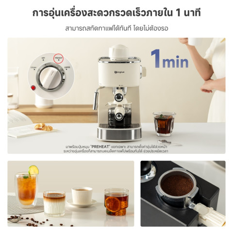 [New Arrival] Simplus เครื่องชงกาแฟกึ่งอัตโนมัติ 5 บาร์ รุ่น KFJH021 (สีขาวครีม)