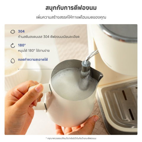 ก้านตีฟองนมสแตนเลส 304 หมุนได้ 180°: ฟองนมนุ่มละเอียด เหมาะกับลาเต้/คาปูชิโน่ และทำลาเต้อาร์ต