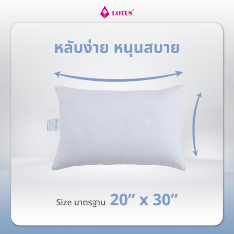 LOTUS หมอนหนุนเพื่อสุขภาพ รุ่น Sleepy ป้องกันไรฝุ่น ใยสังเคราะห์ หมอนใบใหญ่พิเศษที่ออกแบบมาเพื่อการนอนหลับที่สบายและถูกหลักสรีรศาสตร์ รองรับศีรษะและช่วงลำคอได้พอดี ช่วยลดอาการปวดเมื่อยจากการนอน พร้อมสัมผัสนุ่มฟูแน่นกำลังดี เหมาะสำหรับคนที่ต้องการยกระดับคุณภาพการพักผ่อนให้หลับลึกยิ่งขึ้น
