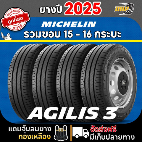 ยาง Michelin Agilis 3 รวมขอบ (4,2เส้น) ปี 25-26 สำหรับรถกระบะ/รถใช้งาน ที่ต้องการความทน คุ้ม และมั่นใจทุกเส้นทาง มาพร้อม แถมฟรีจุ๊บลมยาง และ รับประกันคุณภาพทุกเส้น ใช้งานลุยงานหนักได้เต็มพิกัด ให้การเบรกมั่นใจแม้ดอกยางใกล้หมด เหมาะทั้งใช้งานประจำวันและงานบรรทุก