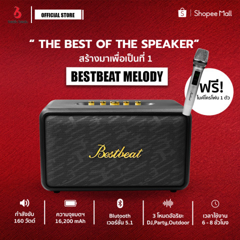 [NEW][FLAGSHIP] Bestbeat-Melody ลำโพงบลูทูธ 160W พลังเสียงจัดเต็ม เบสแน่น เสียงใส ควบคุมโทนเสียงได้อิสระด้วยการปรับเบส/แหลม ให้คุณสนุกกับเพลงได้ทุกแนวทั้งในบ้าน งานปาร์ตี้ หรือใช้งานร่วมกับคอมพิวเตอร์และโน้ตบุ๊กได้อย่างลงตัว มาพร้อมแบตเตอรี่ความจุสูง 16,200mAh ใช้งานต่อเนื่องได้ยาวนาน และรองรับพอร์ตเชื่อมต่อครบครัน