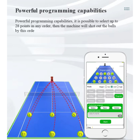 ปรับความถี่การปล่อยลูกได้ ตั้งแต่ 1.8–8.8 วินาที/ลูก เพื่อคุมความหนักเบาของการฝึก