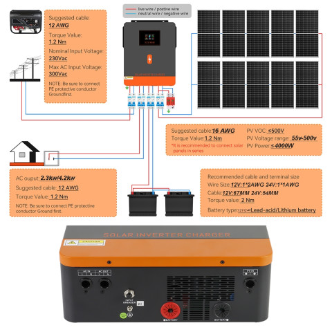PowMr 4.2KW Hybrid Solar Inverter PV Input Max 500Vdc อินเวอร์เตอร์ไฮบริดสำหรับระบบโซลาร์ที่ต้องการความยืดหยุ่นและประสิทธิภาพสูง มาพร้อม MPPT Solar Charger Controller 100A ในตัว ช่วยดึงพลังงานจากแผงโซลาร์ได้เต็มประสิทธิภาพ รองรับการใช้งานร่วมกับแบตเตอรี่ LiFePO4 12V / 24V เหมาะสำหรับบ้านพักอาศัย ร้านค้า หรือระบบสำรองไฟที่ต้องการความเสถียร