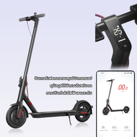 สกูตเตอร์ไฟฟ้า 500W 36V 12Ah พับได้ ดีไซน์เท่ สีดำ พร้อมฟังก์ชันเชื่อมต่อบลูทูธ ขับสนุก คล่องตัว เหมาะทั้งเดินทางไปทำงาน/เรียน หรือใช้งานในชีวิตประจำวัน ให้ความเร็วสูงสุดได้ถึง 25–35 กม./ชม. พร้อม โหมดประหยัดพลังงาน 18 กม./ชม. สำหรับผู้เริ่มต้น ขับขี่มั่นใจด้วยระบบเบรกคู่ และกันละอองน้ำระดับ IP54