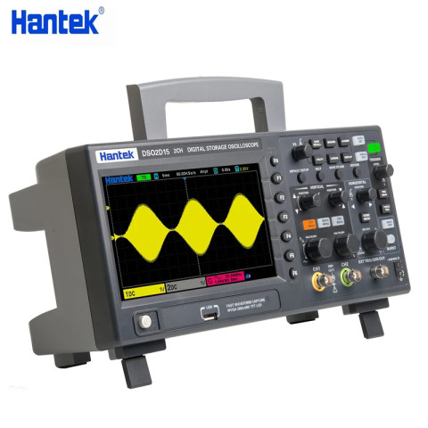 Hantek DSO2C10 / DSO2C15 / DSO2D10 / DSO2D15 ออสซิลโลสโคปแบบดิจิตอล 2CH ประสิทธิภาพสูงสำหรับงานซ่อมอิเล็กทรอนิกส์ งานพัฒนาไมโครคอนโทรลเลอร์ และงานวิเคราะห์สัญญาณในห้องแล็บ มาพร้อมอัตราการสุ่มตัวอย่างสูง 1GS/s, หน่วยความจำลึก 8M และฟังก์ชันวัดค่าอัตโนมัติที่ครบครัน ใช้งานคล่องด้วยปุ่ม/ลูกบิดควบคุมแยกอิสระต่อช่องสัญญาณ