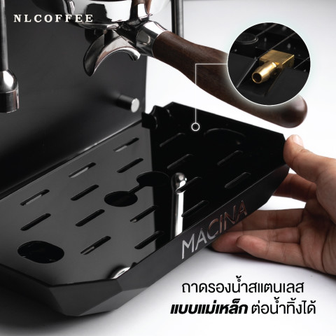 หน้าจอแสดงผลแบบเอียงมองง่าย, ด้านบนมี ที่อุ่นแก้วในตัว, ถาดรองน้ำสแตนเลสแบบแม่เหล็กถอดล้างง่าย และยังสามารถ ต่อท่อน้ำทิ้ง ได้เพื่อความลื่นไหลในการใช้งานต่อเนื่องพร้อมสำหรับงานชงต่อเนื่อง