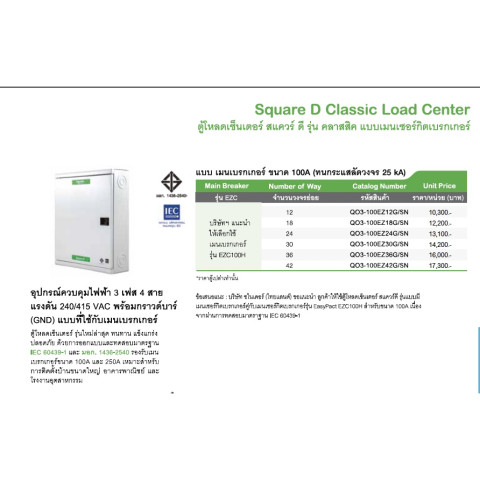 รองรับเมนเบรกเกอร์ 100AF เหมาะกับงานที่ต้องการความทนทานและรองรับโหลดมาก