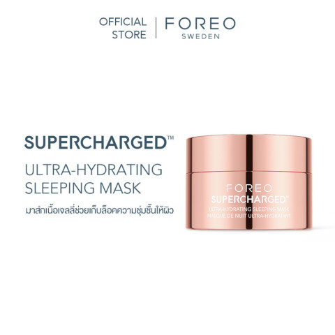 [ห้ามสั่งซื้อ] FOREO SUPERCHARGED Ultra-Hydrating Sleeping Mask 75ml อัลตร้า-ไฮเดรติ้งสลีปปิ้งมาส์กเนื้อเจลลี่ที่ช่วย “ล็อคความชุ่มชื้น” ให้ผิวตลอดคืน เพื่อผิวดูฉ่ำเด้ง สุขภาพดี ตื่นมาพร้อมความสดใสพร้อมรับวันใหม่ทุกวัน ด้วยส่วนผสมจากธรรมชาติสูงถึง 99% บำรุงและรีชาร์จผิวอย่างอ่อนโยน โดยไม่ก่อให้เกิดการอุดตัน เหมาะสำหรับทุกสภาพผิวแม้ผิวแพ้ง่าย