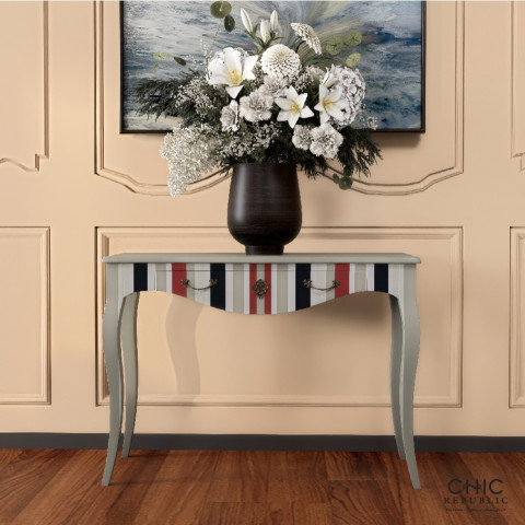 Chic Republic โต๊ะคอนโซล รุ่น CURREY/105 โต๊ะคอนโซลสไตล์ Vintage (วินเทจ) ที่โดดเด่นด้วยเทคนิค Distress ช่วยสร้างลุคแอนทิคอย่างมีเสน่ห์ พร้อมงานแกะสลัก ทำด้วยมือ (Handmade) ในทุกชิ้น เหมาะสำหรับวางที่โถงทางเข้า หลังโซฟา หรือผนังห้องนั่งเล่น เพิ่มคาแรกเตอร์ให้บ้านดูอบอุ่นและมีเรื่องราวในมุมโปรดของคุณ